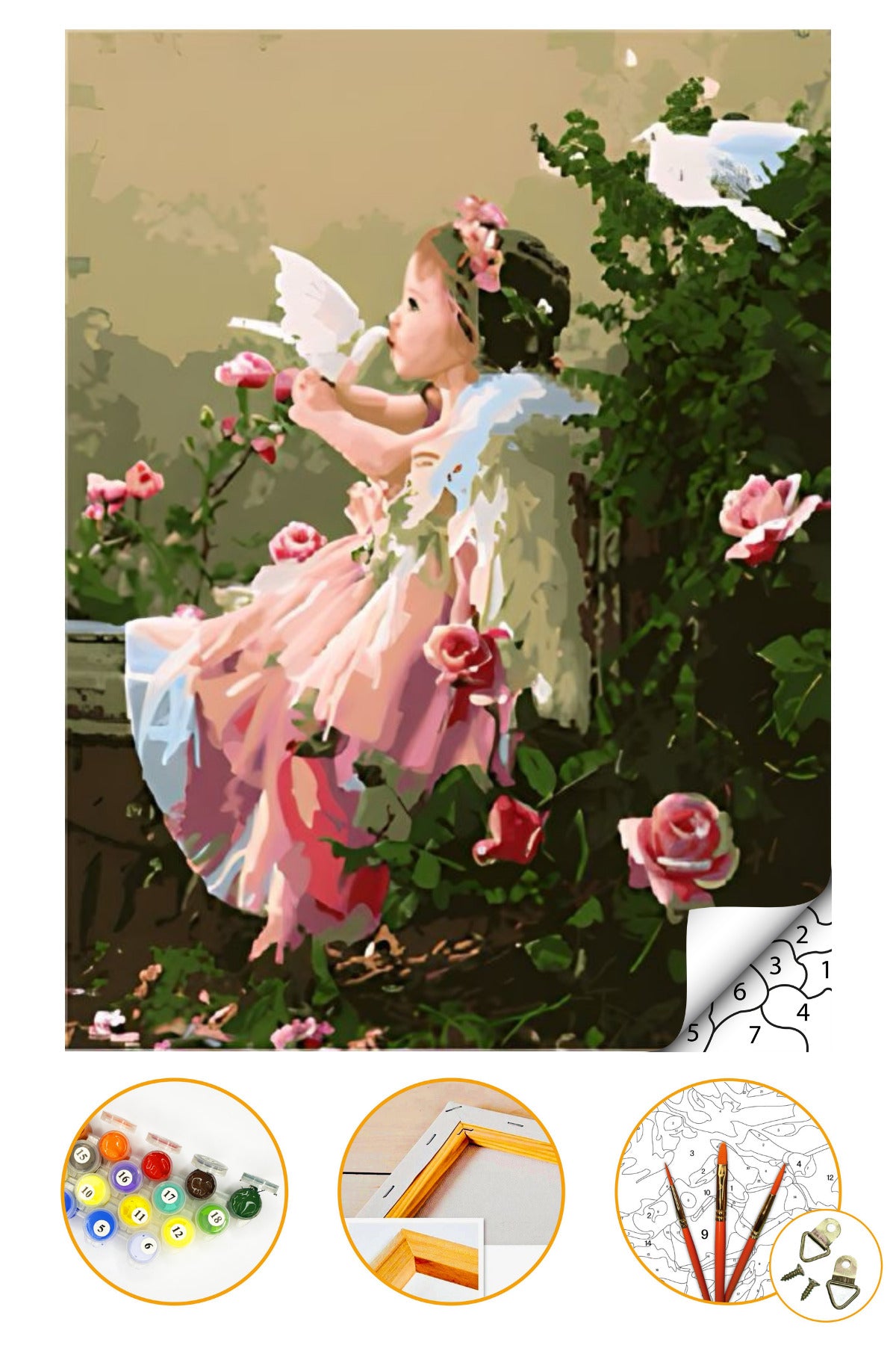 Çocuk ve Kuş - Sayılarla Boyama Seti Kasnağa Gerili 40x50cm Boyalar ve Fırçalar Dahil