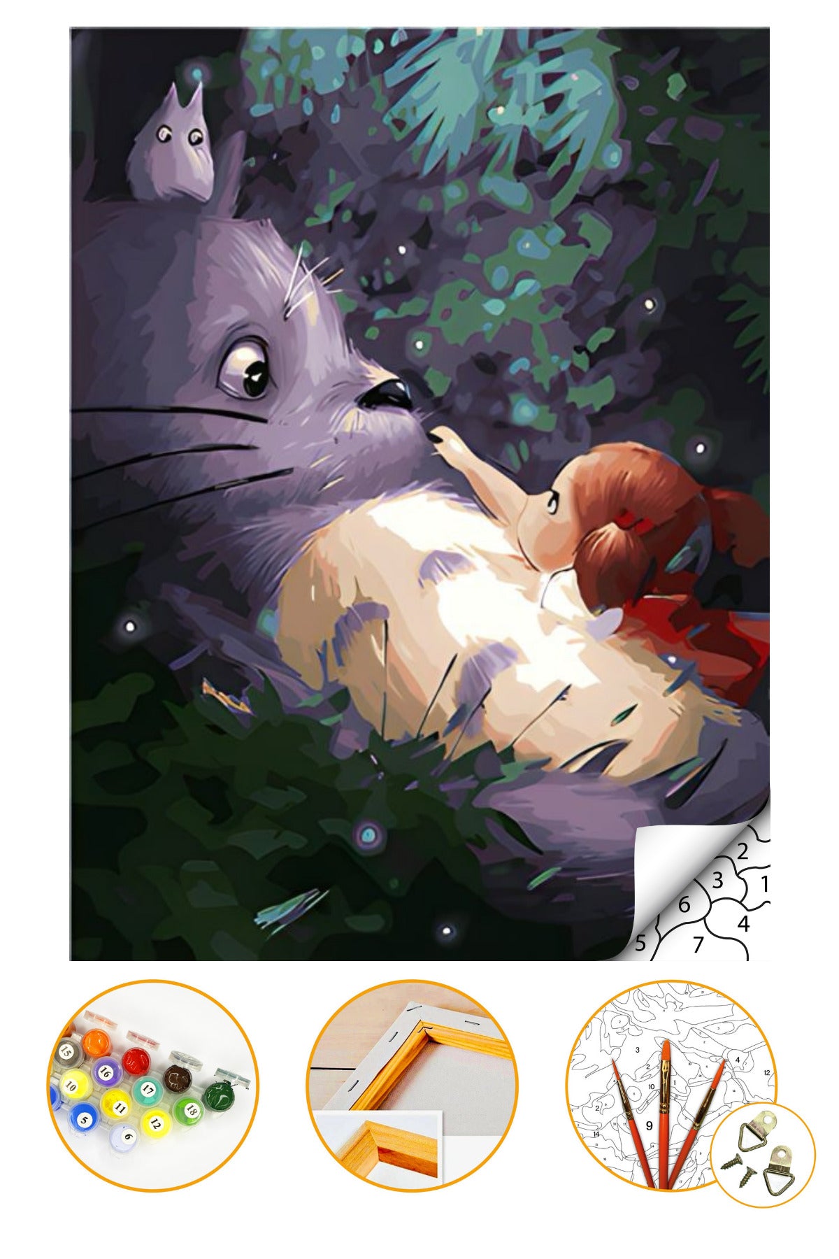 Küçük Kız ve Ayıcık - Sayılarla Boyama Seti Kasnağa Gerili 40x50cm Boyalar ve Fırçalar Dahil
