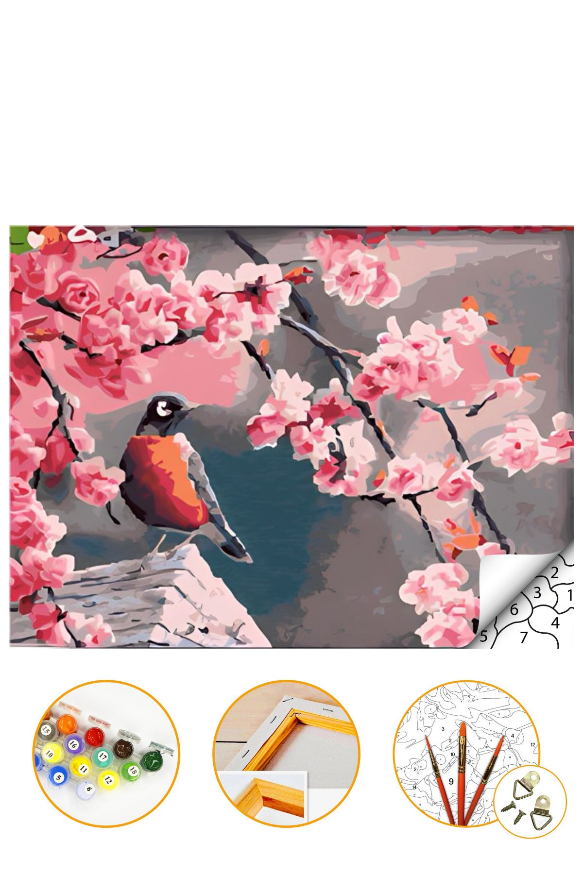 Kuş ve Çiçek - Sayılarla Boyama Seti Kasnağa Gerili 40x50cm Boyalar ve Fırçalar Dahil