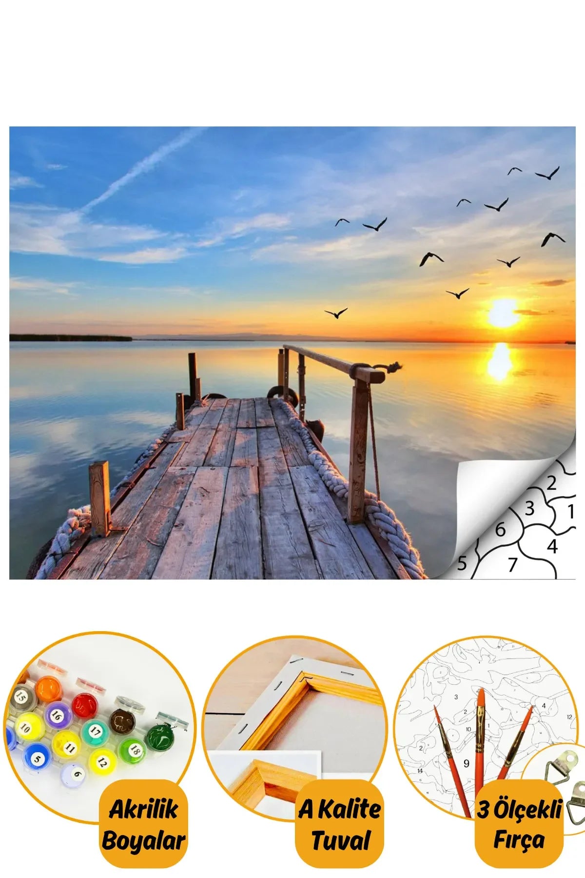 Sayılarla Boyama Hobi Seti Boyalar, Fırçalar Dahil Çerçeveli 40 X 50 Cm "huzurlu Manzara"