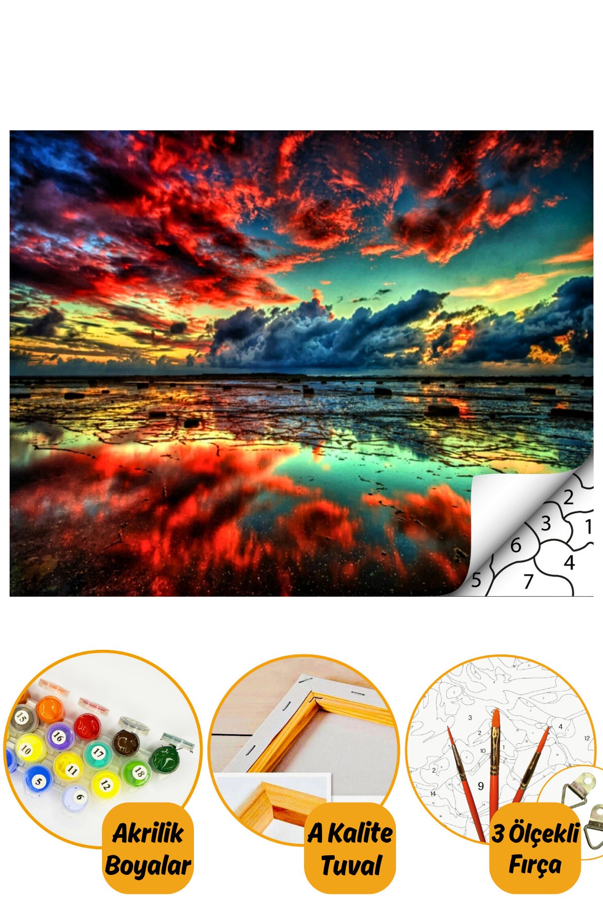 Sayılarla Boyama Hobi Seti Boyalar Ve Fırçalar Dahil Çerçeveli 40 X 50 Cm "gökyüzü"