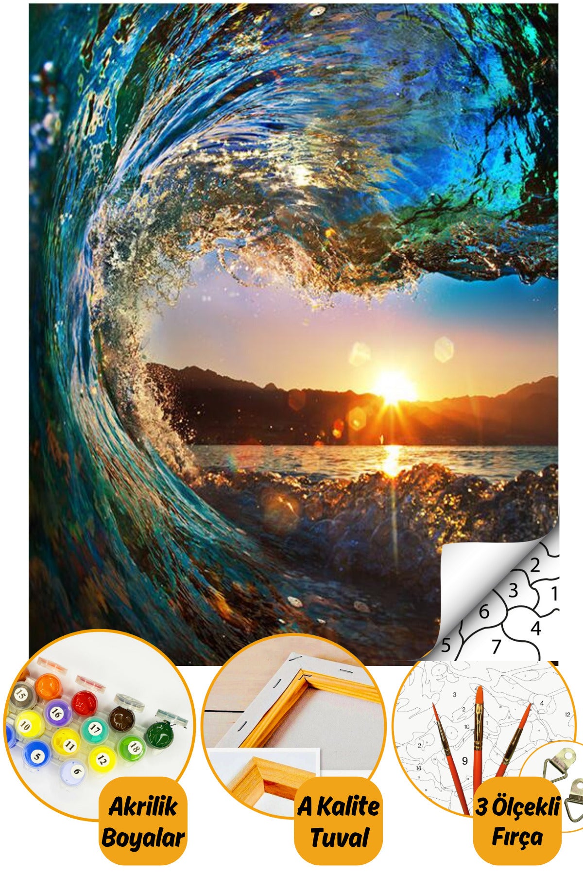 Sayılarla Boyama Hobi Seti "boyalar Ve Fırçalar Dahil Çerçeveli 40x50cm Dalgalar