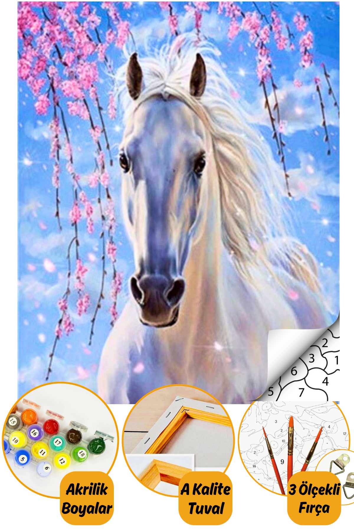 Sayılarla Boyama Hobi Seti "boyalar Ve Fırçalar Dahil Çerçeveli 40x50cm - Pembe Çiçekli At