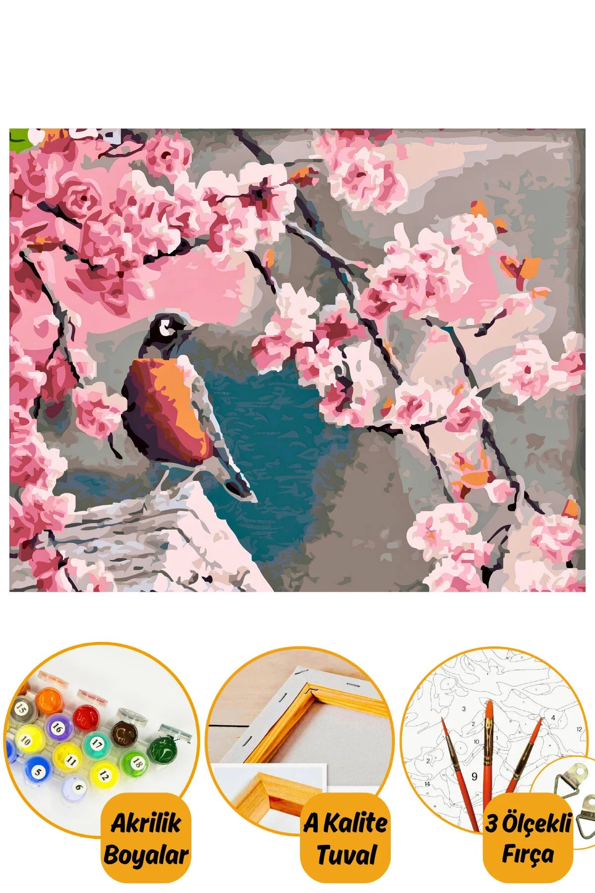 Sayılarla Boyama Hobi Seti "boyalar Ve Fırçalar Dahil Çerçeveli 40x50cm - Pembe Kuş