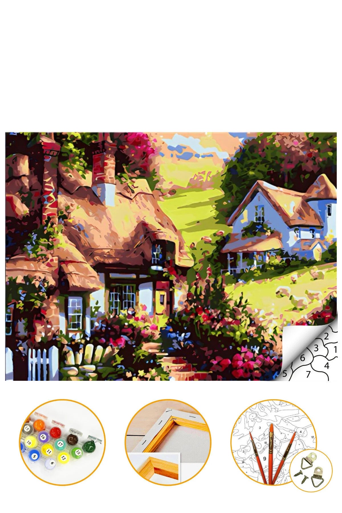 Şirin Köy - Sayılarla Boyama Seti Kasnağa Gerili 40x50cm Boyalar ve Fırçalar Dahil