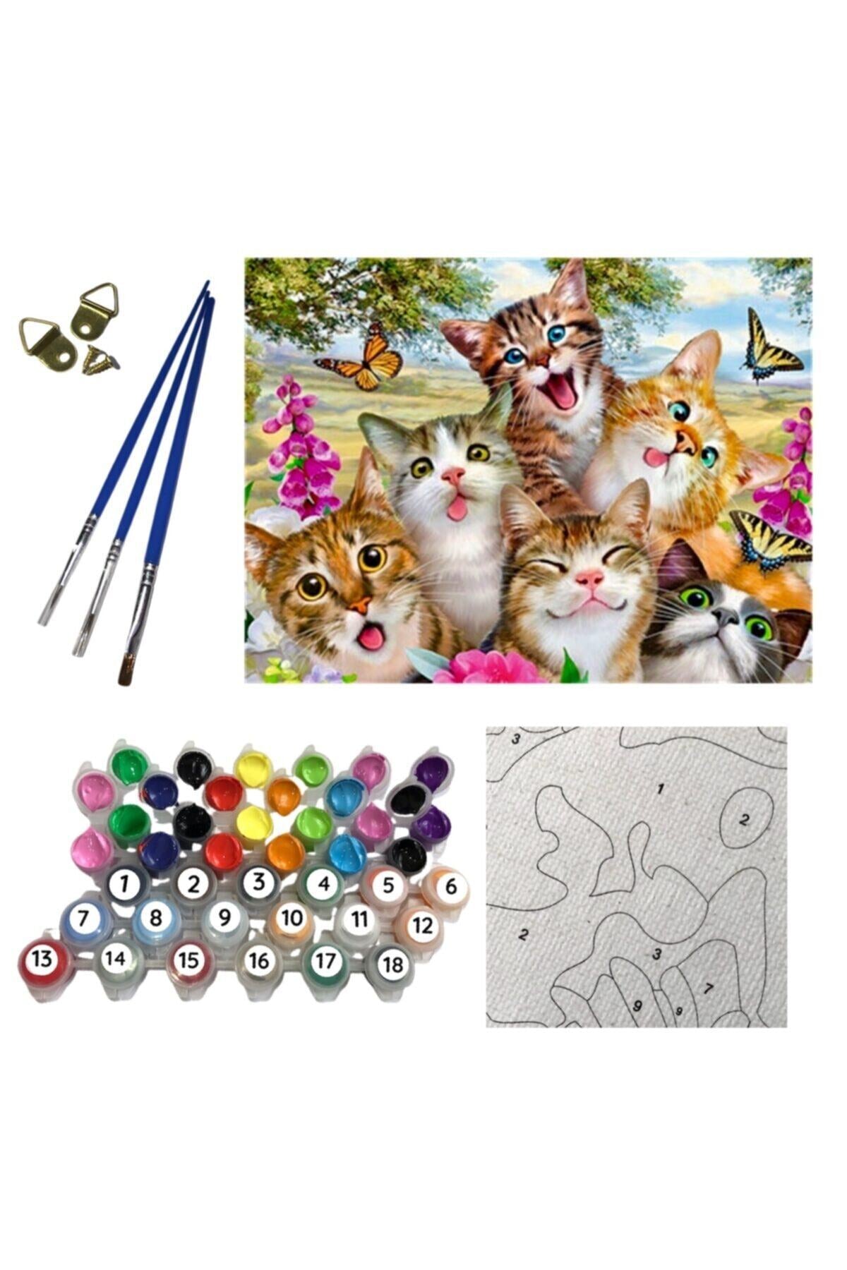 Tatlı Kediler - Sayılarla Boyama Hobi Seti "boyalar Ve Fırçalar Dahil Çerçeveli 40x50cm